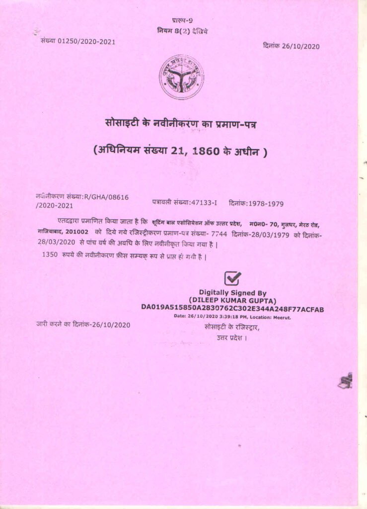 • Shooting Ball Association of Uttar Pradesh was formed by Abdul Halim Khan M.L.A. as President, R.K. Garg, Hakeem Zishan, J.P. Sharma as Vice President, Baldev Raj Suri as General Secretary, Yash Pal, A.R.Khan, R.B.L.Saxena as Joint Secretary, BankeLal Sharma as Chairman Technical, Jai Kiran Singh as Treasurer, Vaneet Kumar,Vishaw Nath Gupta, Guldin Qureshi,Raghunandan Sharma as Executive Member on dated 15.08.1978 and get registration under Society act on dated 28.03.1979