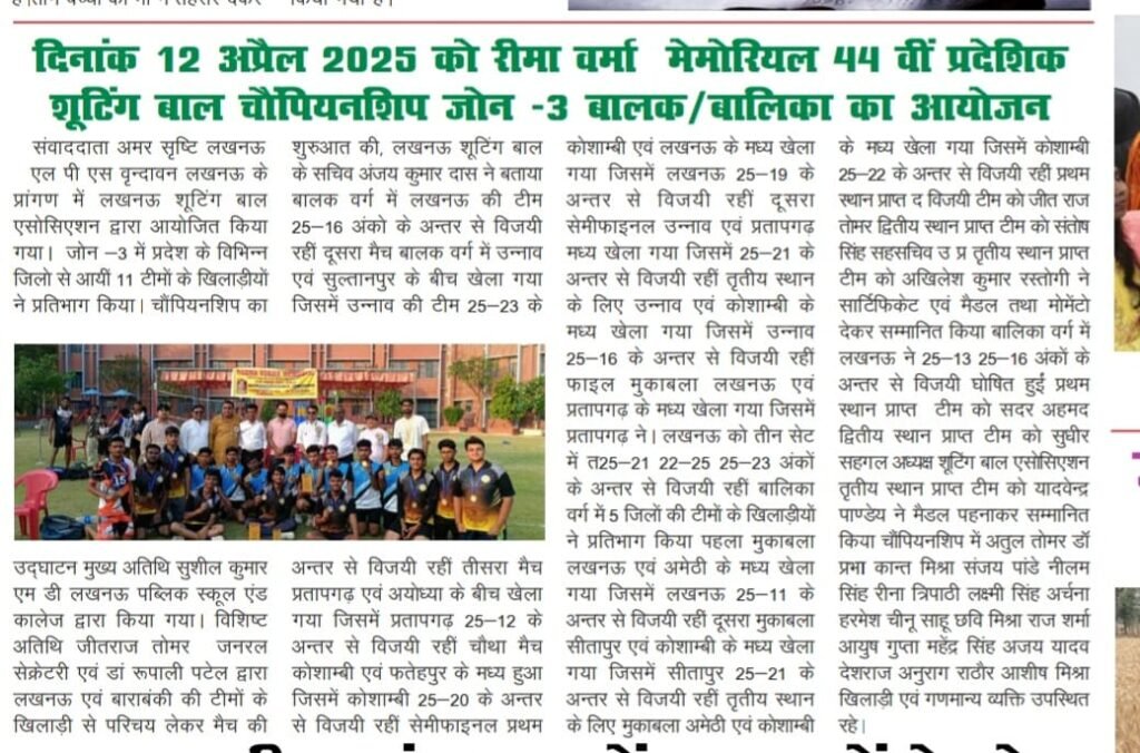- 44th (Sub Junior Boys & Girls) U.P. State Championship (Zone 3) held at Lucknow Public School, Varindavan Yojna, Lucknow on 12th April 2025